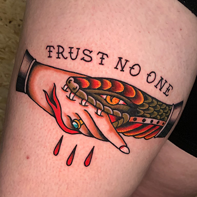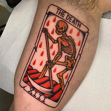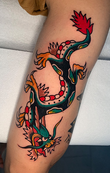 David es nuestro experto en tatuajes tradicionales y neotradicionales, dominando la creación de obras tanto en blanco y negro como a todo color. Siempre ofrece una variedad de diseños disponibles, pero también está dispuesto a escuchar y materializar tu idea única y personal.